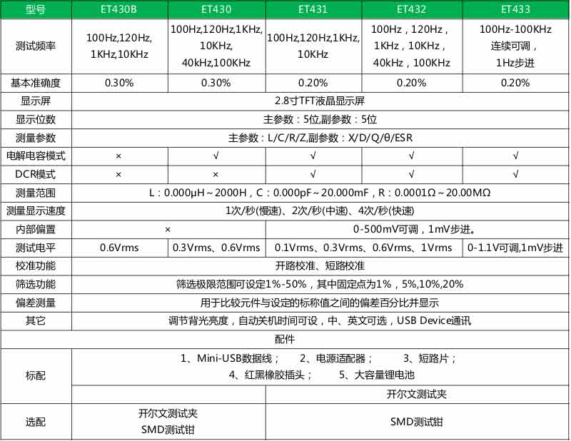 ET43系列手持電橋集2.8寸TFT顯示、靈活方便的按鍵操作與USB全速通訊于一身;大容量鋰電池可以保證長時間的工作。功能上不僅擁有全面的測量參數(shù),還可以進行偏差測量和篩選,輸出頻率連續(xù)可調(diào);在性能上,基本精度達到0.2%。