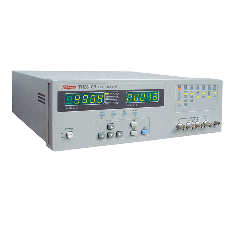 TH2810B型LCR數字電橋是一種測試速度快、精度高、測試范圍寬的通用阻抗測量儀器。 四個測試頻率點,最高至 10 kHz, 30 Ω 、100 Ω兩種不同信號源輸出阻抗可使儀器測量結果與眾多LCR結果相一致,同時也能適應陶瓷電容器對測量電平的要求?蓾M足生產線質量保證、進貨檢驗的測量要求。 技術參數