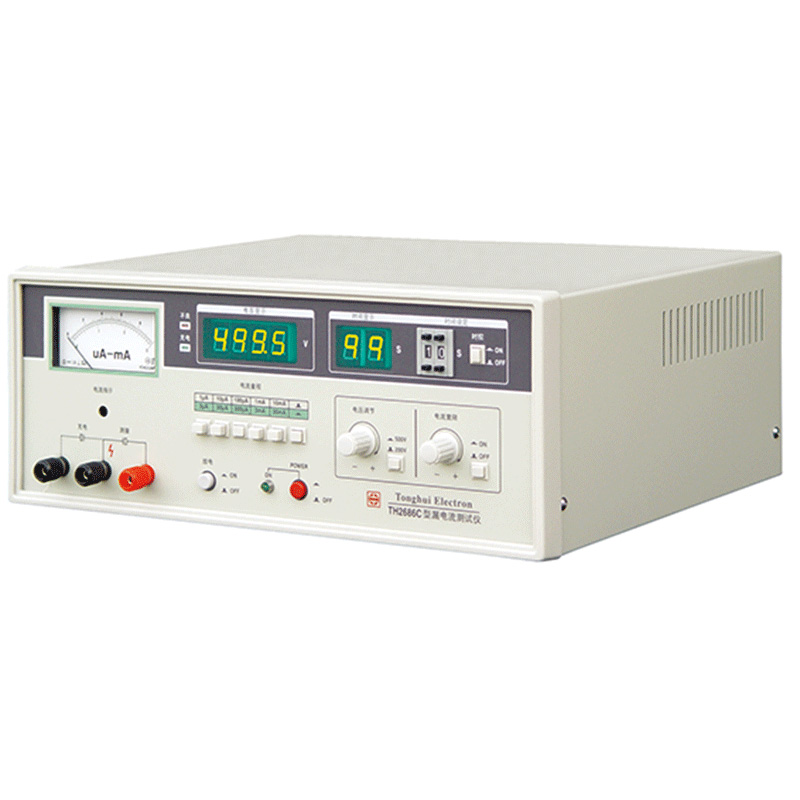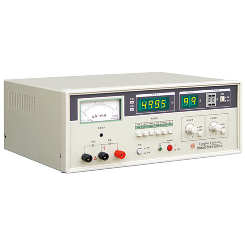 TH2686C型電解電容漏電流測試儀是一種能自動測量電解電容漏電流參數的測試 儀器。測試電壓連續可調。電壓值、充電時間數字顯示,電流值表針指示,充電 — 測試自動轉換。具有電流超限指示,測試速度快,操作方便,安全可靠等特點。適用于生產線的質量保證及進貨檢驗。