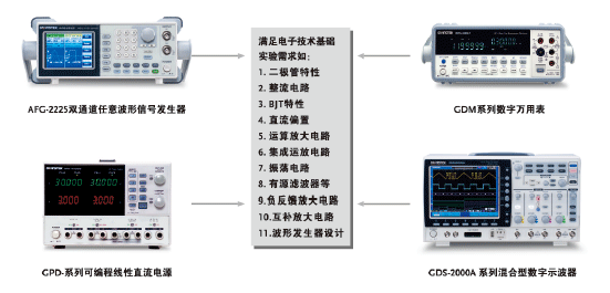 AFG-2225雙通道任意波形信號發生器、GPD系列電源、GDS-2000A系列混合型數字示波器、GDM系列萬用表